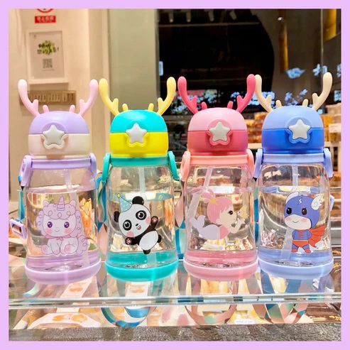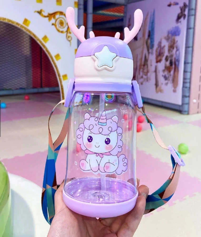 Make hydration fun for kids with this Plastic Deer Horn Shape Water Bottle! Designed with an adorable deer antler cap and vibrant cartoon graphics, this 600ML water bottle is both stylish and functional. Crafted from BPA-free, non-toxic plastic, it ensures safe drinking water every time. The anti-leak design prevents spills, while the built-in straw allows for easy sipping. The adjustable carrying strap makes it convenient for children to carry to school, playgrounds, or picnics. Lightweight, durable, and easy to clean—this water bottle is perfect for kids of all ages. Encourage your little ones to stay hydrated in style with this fun and practical deer horn-shaped bottle!